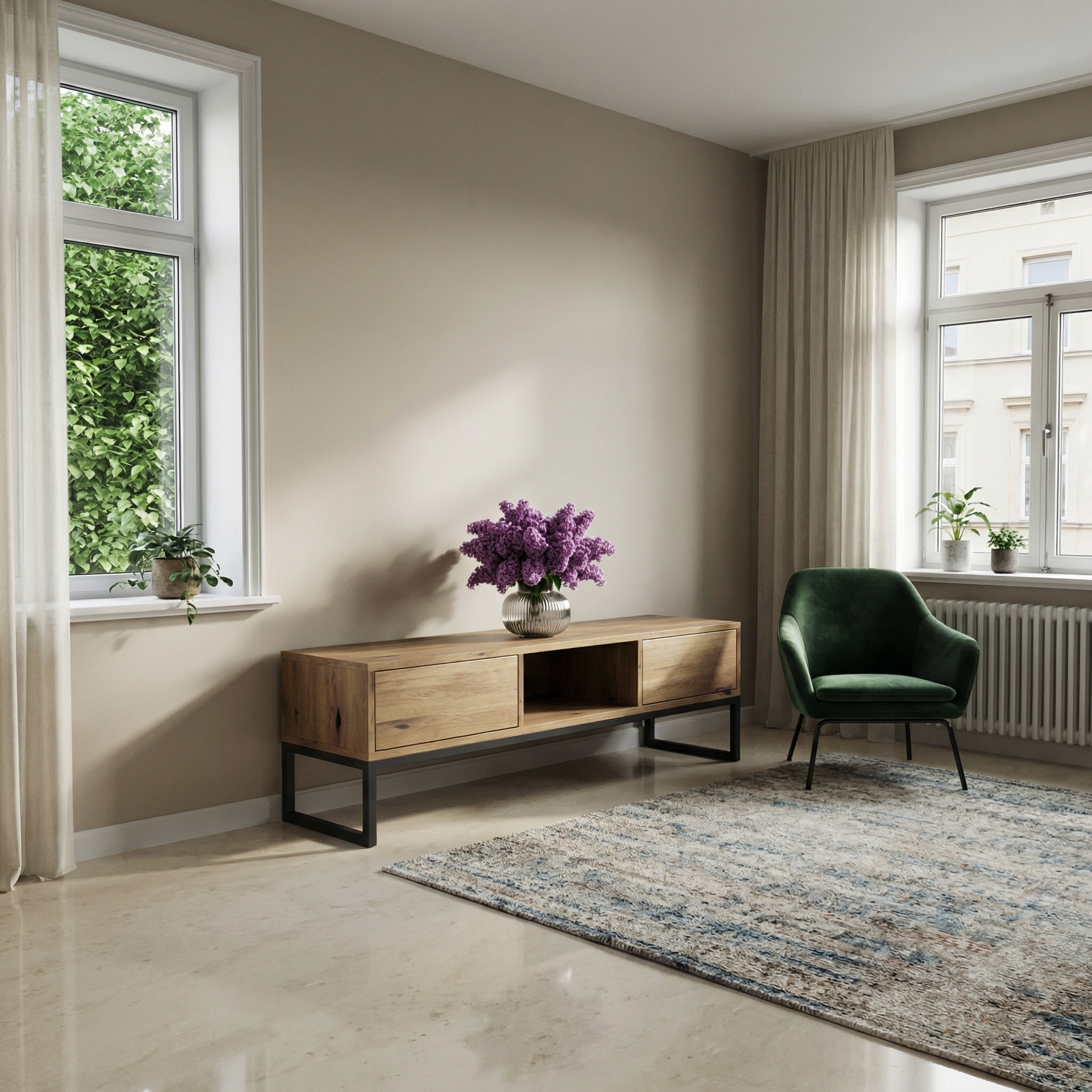 Szafka RTV Bodem wykonana z litego drewna dębowego i stali. Mebel ten jest nowoczesny, a stalowa konstrukcja daje pewność stabilności i wytrzymałości. Jej prosta konstrukcja umożliwia uniwersalność w aranżacji, szafka sprawdzi się w pomieszczeniach w stylu loftowym, nowoczesnym, klasycznym, industrialnym oraz skandynawskim. Meble tworzone w naszej pracowni są unikalne i jedyne w swoim rodzaju, masywne a zarazem eleganckie. Szafka dębowa Bodem to uroczy i praktyczny mebel, nadaje charakteru wnętrzu, wyeksponuje pamiątki, zdjęcia i ulubione książki, to wspaniały mebel na lata, który podkreśli wyjątkowość twojego domu. Perfekcyjne wykończenie i ponadczasowy design do każdego wnętrza.