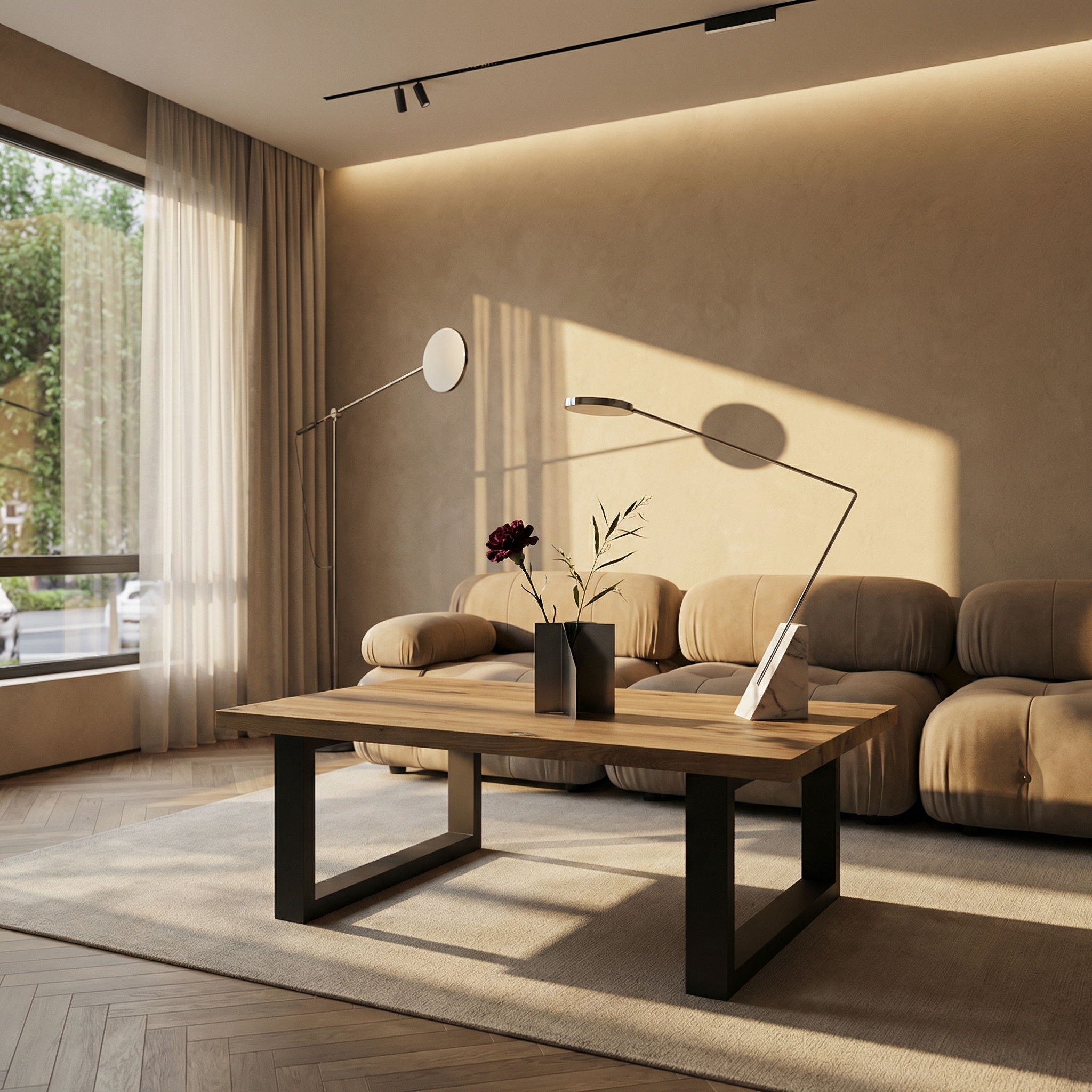 Możesz ustawić go przy narożniku, klasycznej sofie lub dużym fotelu – jego forma pozwala na łatwe dopasowanie do różnych układów mebli. Jest wystarczająco duży, aby pomieścić kawę, przekąski, dekoracje czy laptopa, a jednocześnie na tyle lekki wizualnie, że nie przytłacza przestrzeni. Dzięki metalowej konstrukcji pozostaje stabilny, nawet przy intensywnym użytkowaniu.