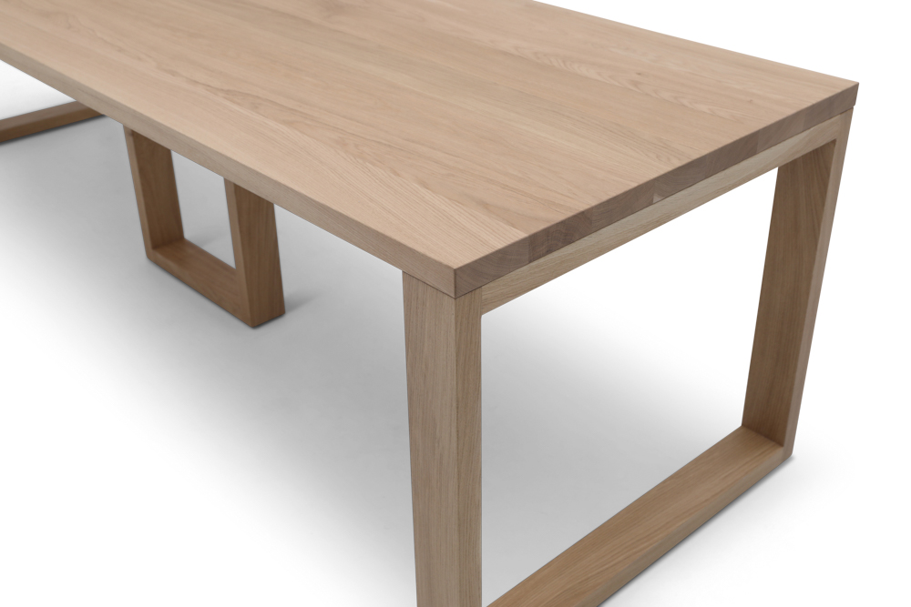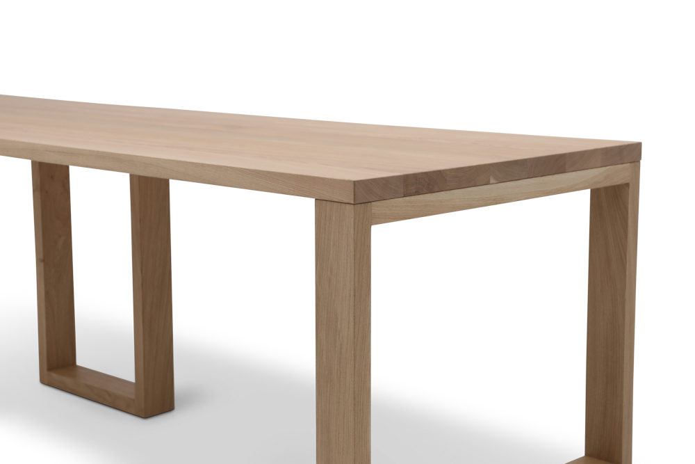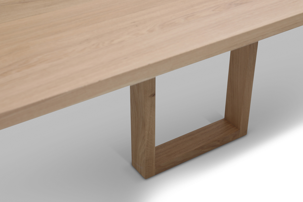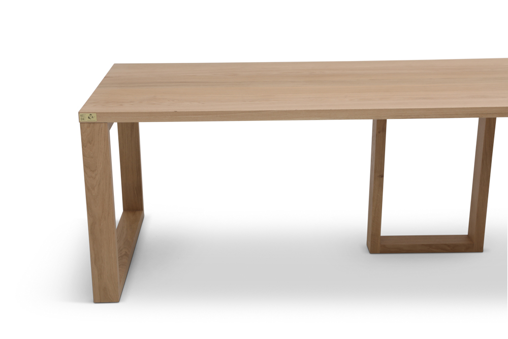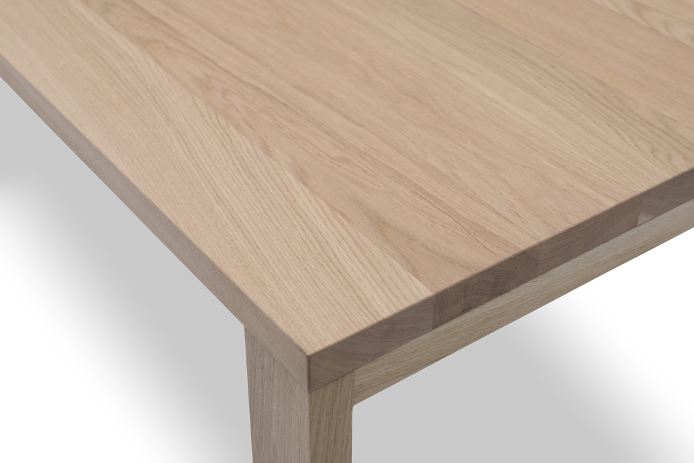 Blat wykonany z długich szerokich desek dębowych o grubości 40 mm . Do wykończenia używamy twardego lakieru dwuskładnikowego lub wosku olejnego. Obydwa produkty zapewniają odporność na wylaną wodę, sok z buraków czy wino. Wosk olejny należy uzupełniać we własnym zakresie, w zależności od użytkowania stołu 1-2 razy na rok.