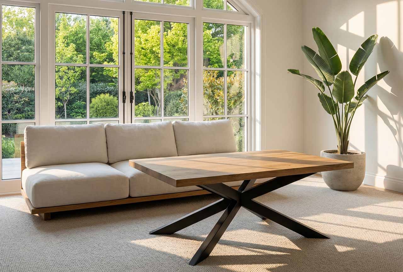 Stolik kawowy z podstawą X – stabilność, która zachwyca formą