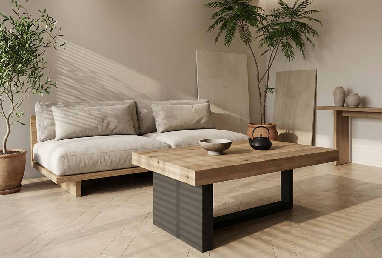 Geometryczna forma, wyważone proporcje i minimalistyczna stylistyka sprawiają, że stolik harmonijnie komponuje się z różnymi aranżacjami – od loftu po wnętrza w stylu skandynawskim, japandi czy organic modern.