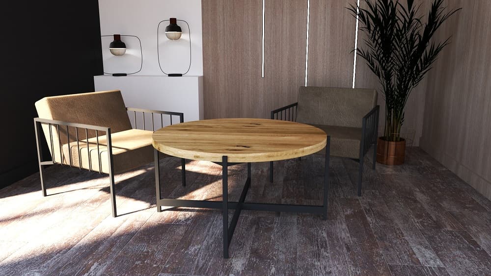 Drewniany blat i stalowe nogi tworzą harmonijną kompozycję, która wprowadza do wnętrza elegancję, ale też przyjazną, naturalną atmosferę. Ten stolik kawowy okrągły 100 cm może pełnić różne role – od stolika kawowego w salonie, przez stolik do poczekalni, aż po funkcjonalny element wystroju w hotelu czy restauracji.