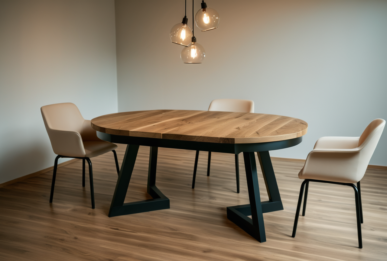 Uniwersalność i funkcjonalność – owalny industrialny stół