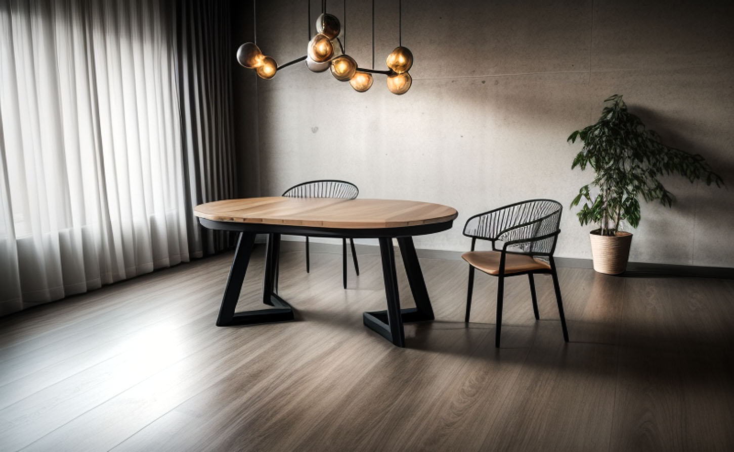 wykonany z wyselekcjonowanego litego drewna dębowego to idealny wybór dla tych, którzy chcą stworzyć nowoczesne wnętrze z industrialnym akcentem. Stół drewniany z owalną krawędzią blatu, industrialny na metalowych płozach. Metalowa konstrukcja jest stabilna oraz wytrzymała, malowana proszkowo na wybrany kolor. Dębowy stół loftowy pasuje do jaskrawych nowoczesnych kolorów, pomieszczeń w stylu loft i salonu gdzie dominują delikatne i subtelne barwy w stylu skandynawskim. Jest  to idealny stół do dużej jadalni.  Nowoczesny styl stołu sprawia, że znajdzie wiele zastosowań, to wspaniały mebel na lata.