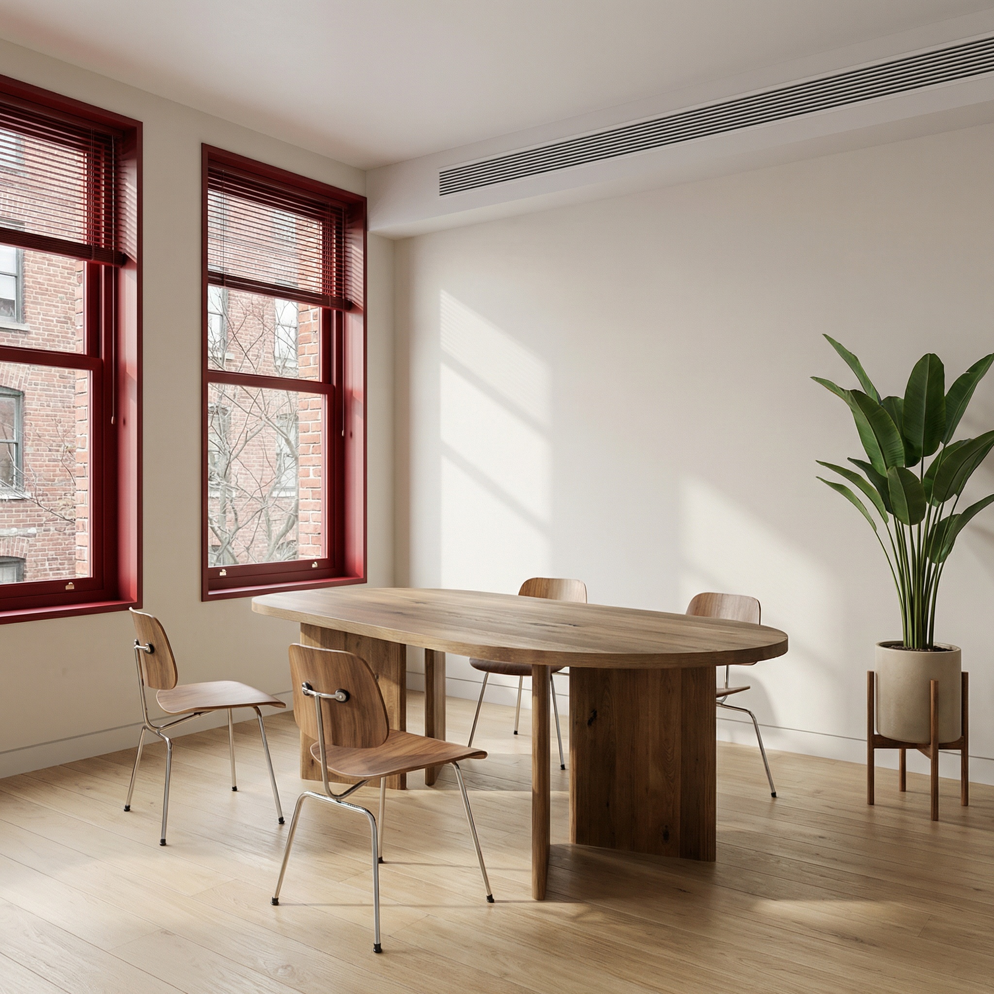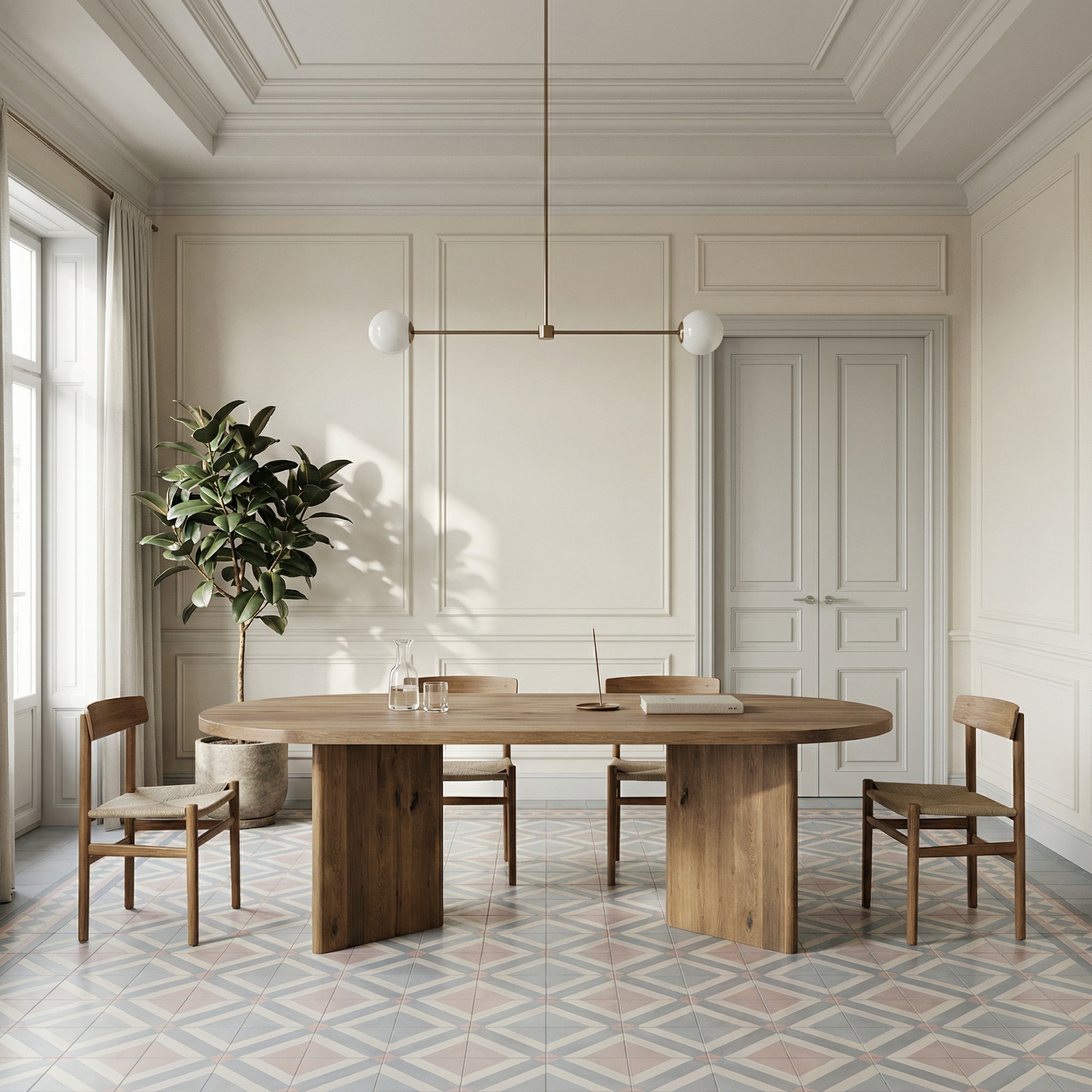 Wnętrza japandi często cechuje prostota i brak zbędnych dekoracji, dlatego taki stół staje się centralnym punktem pomieszczenia. To przy nim skupia się codzienne życie – wspólne posiłki, rozmowy, praca czy odpoczynek przy filiżance herbaty.