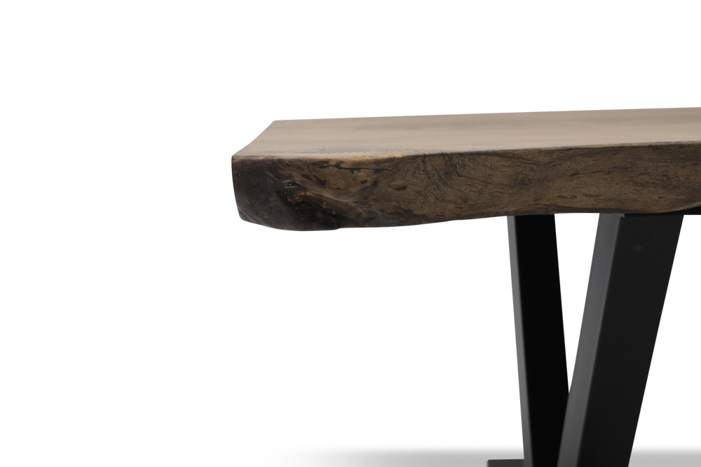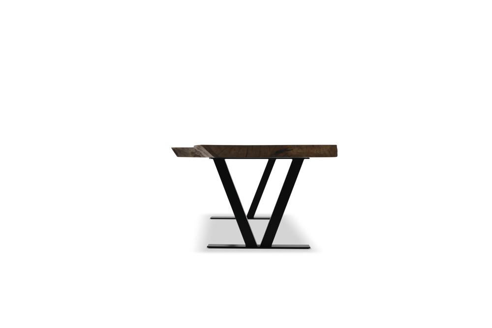 Masywny blat połączony z nowoczesnymi stalowymi nogami tworzy wyjątkowy kontrast form i materiałów.